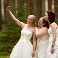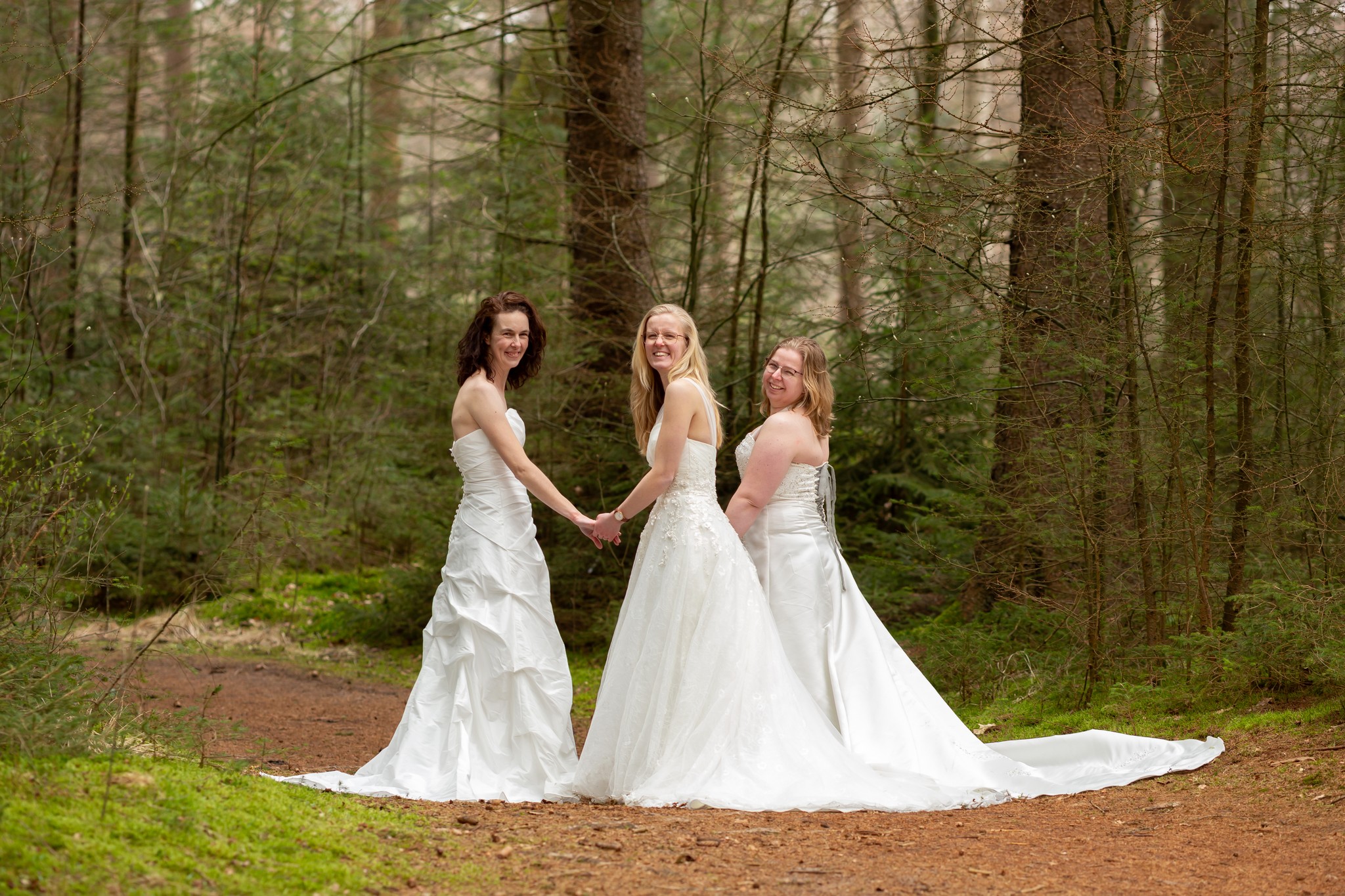 Vandaag stonden deze drie schoonzussen samen voor onze camera — allemaal in hun trouwjurk 🤍